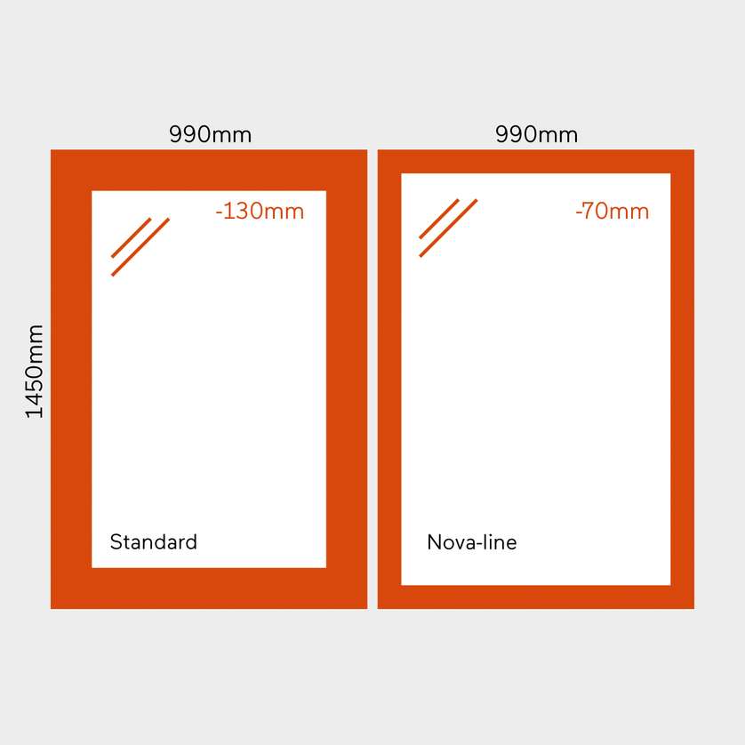 A Nova Line ablak szárnykerete kategóriájában a legkeskenyebb. Így biztosítja a maximális fénymennyiséget és a kilátást egy standard kivitelű ablakhoz képest.